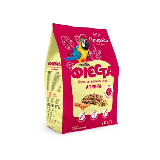 Рецептура корму розроблена спеціально для великих папуг, які утримуються в домашніх умовах. Вона складена у відповідності до рекомендацій ветеринарів та фахівців з розведення декоративних птахів. Корм містить всі необхідні компоненти, які забезпечують улюбленців вітамінами, мінералами та іншими корисними речовинами. Овес та насіння гарбуза збагачують раціон птахів йодом, цинком, незамінними амінокислотами, калієм, магнієм, залізом, цинком, вітамінами групи В. Сушені яблука, горобина, виноград і кероб наближають склад корму до природного раціону птахів, дарують енергію та нормалізують травлення. Завдяки герметичній упаковці корм зберігає приємний аромат і захищений від шкідливої дії вологи