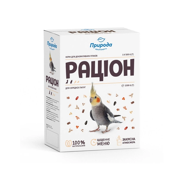 Корм для птахів Природа Раціон для середніх папуг 1.5 кг (4820157400814)