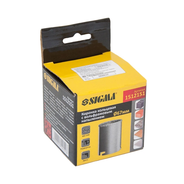 Коронка Sigma кільцева з вольфрамовим напиленням 67мм (1512151)