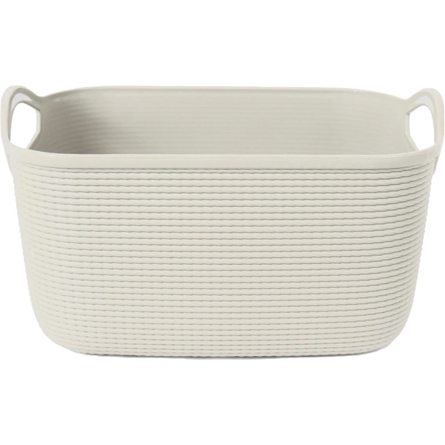 Універсальна корзина для речей, виготовлена із безпечного пластику. Розміри корзини дають можливість зберігати її в шафі або на поличці. В ній зручно розмістити рушники, білизну, іграшки, косметику та миючі засоби. Корзина має декор у вигляді плетіння та оснащена зручними та міцними ручками.