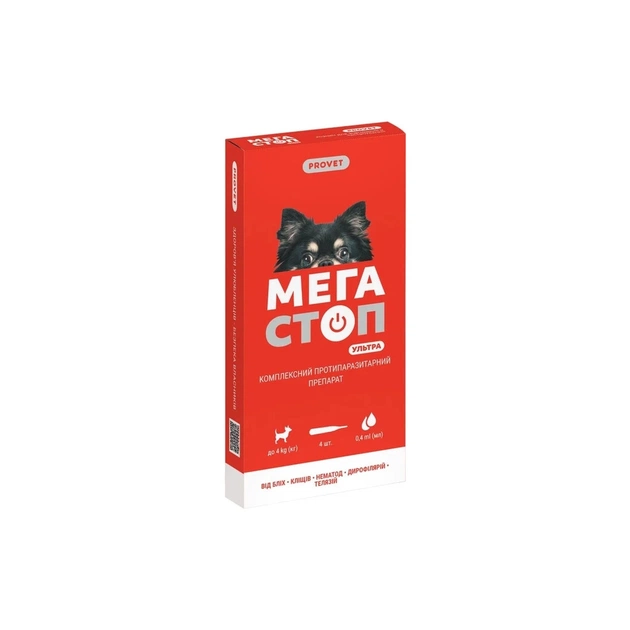 - Полімерні піпетки: 0.4 мл - для собак з масою тіла від 1 до 4 кг;