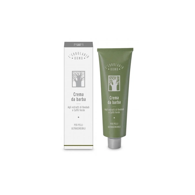 М'який легкий Крем для гоління L'Erbolario Баобаб, у якому велика кількість рослинних ефірних олій, надає аромат свіжої зелені, підготує вашу шкіру до м'якого гоління. Сприятливий вплив на шкіру чинять олія баобаба та олія бабассу, а також кавова олія, які живлять і пом'якшують шкіру, а екстракти з плодів баобаба та зелених зерен кави тонізують і захищають її.