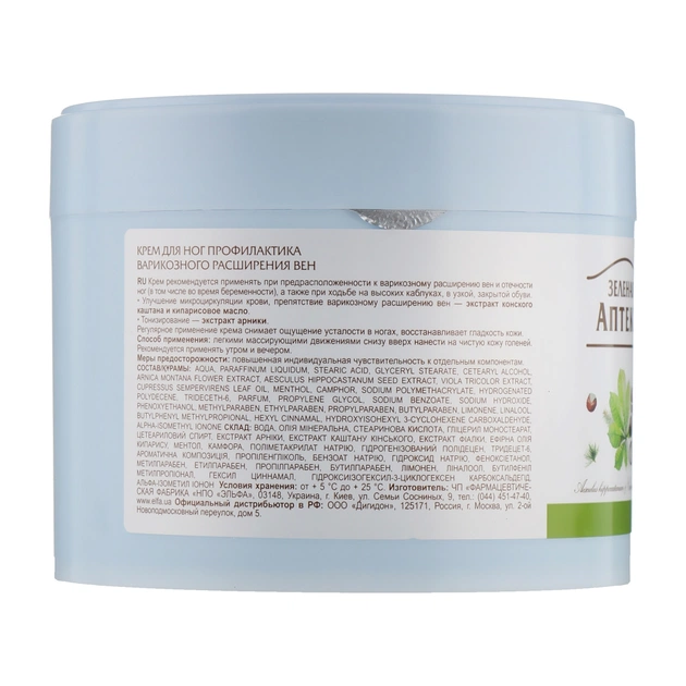 Крем приємно охолоджує, пом'якшує й тонізує шкіру ніг, усуває важкість і втому. Рекомендується застосовувати у разі схильності до варикозного розширення вен і набряклості, ходьбі на високих підборах, у вузькому, закритому взутті.
