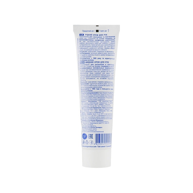 До складу крему включені гліцерин і ліпофільні компоненти. Вони вирізняються особливою потужністю, впливають на глибокі шари епідермісу, насичують його тканини вологою і створюють надійний бар'єр проти впливу зовнішніх негативних факторів. За допомогою крему ви зможете провести терапію та відновити пошкоджену шкіру в екстрених випадках, а також використовувати його для щоденного догляду. Рідка консистенція засобу швидко вбирається, не залишає неприємного липкого ефекту. Регулярне використання крему стане запорукою здоров'я і краси шкіри рук.