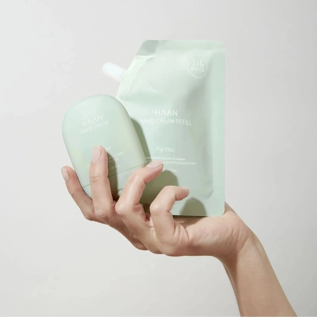 Особливість ніжних кремів для рук HAAN не лише в їхніх вишуканих ароматах, а й в екологічності. Фахівці бренда розробили упаковки, які можна наповнювати повторно за допомогою змінних блоків. Крем Fig Fizz грає зігрівальним ароматом інжиру та гострого червоного перцю. Формула з пребіотиками відновлює шкіру рук та зміцнює захисний бар'єр. Крем ідеально підійде для шкіри, схильної до сухості та стягнутості. Використовуйте змінний блок, який розрахований на 3 заправки тюбика, та продовжуйте «життя» улюбленого крему.