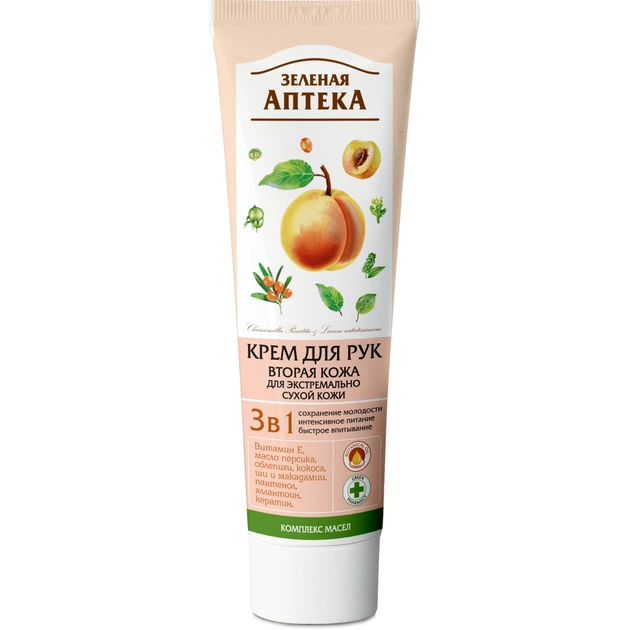 Шкірний покрив рук часто страждає від зневоднення через несприятливий вплив факторів навколишнього середовища. Крем «Друга шкіра 3 в 1» українського бренда «Зелена аптека» виготовлений на основі натуральних олій і вирізняється комплексним впливом на епідерміс рук.