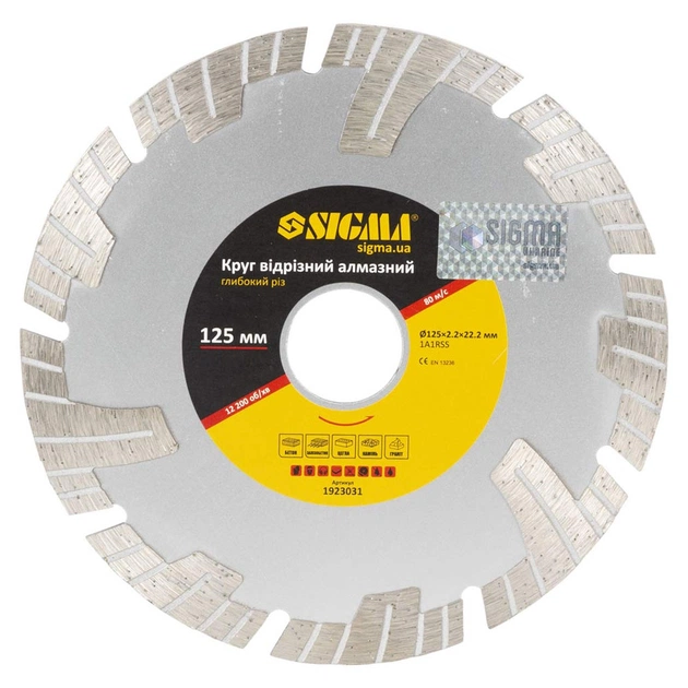 Круг відрізний Sigma алмазний Глибокий різ 125x22.2мм (1923031)