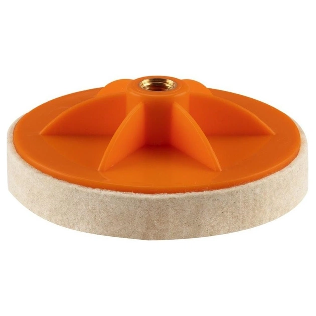 Фетр полірувальний NEO (арт 08-962) діаметром 125 мм і товщиною губки 20 мм, кріпиться на різьбі М14. Виготовлений з натуральної вовни. Призначений для кутових шліфувальних машин. Засіб призначений для надання блиску нефарбованим хромованим, металевим, скляним і твердим пластиковим поверхням. Рекомендується використовувати при максимальній частоті обертання 5000 об/хв.