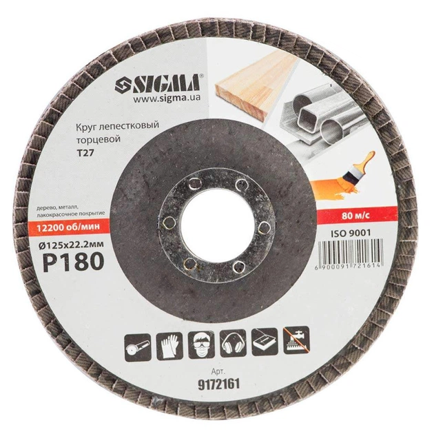 Круг зачистний Sigma пелюстковий торцевий Т27 (прямий) 125мм P180 (9172161)