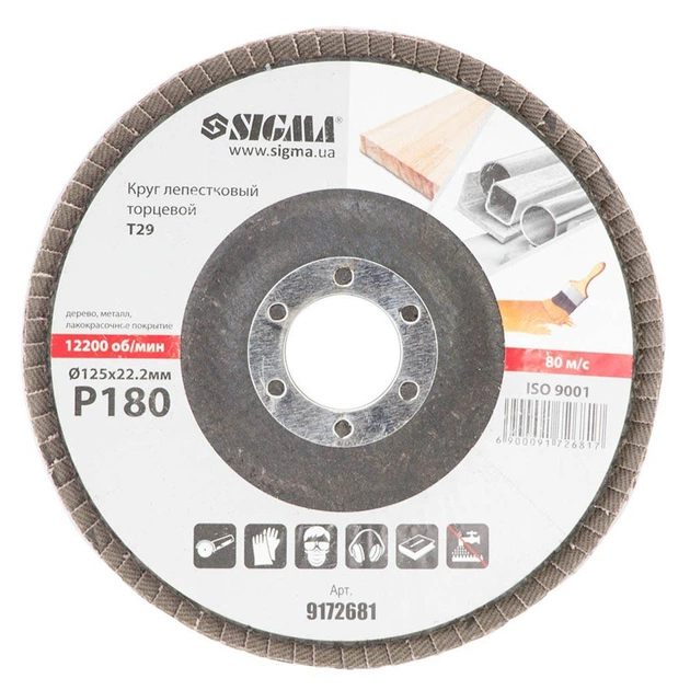 Круг зачистний Sigma пелюстковий торцевий Т29 (конічний) 125мм P180 (9172681)