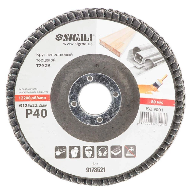 Круг зачистний Sigma пелюстковий торцевий Т29 (конічний) ZA 125мм P40 (9173521)