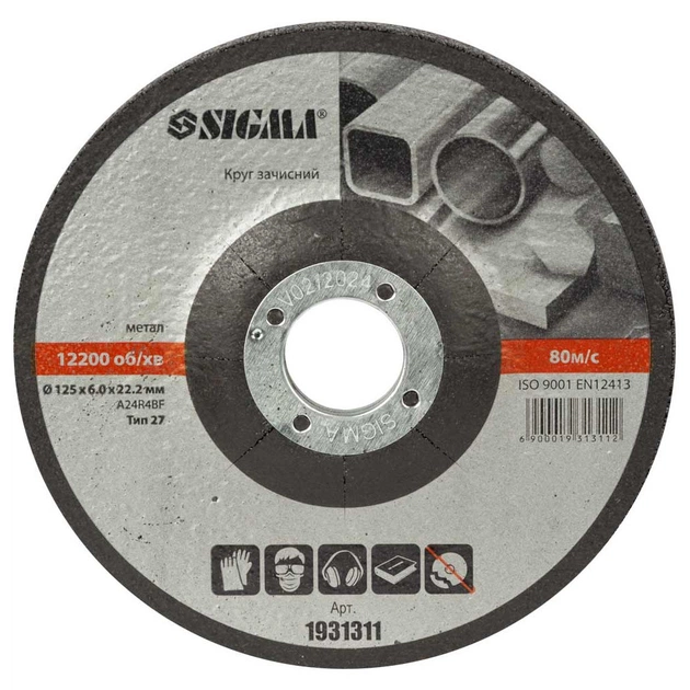 Круг зачистний Sigma по металу 125x6.0x22.2мм, 12200об/хв (1931311)