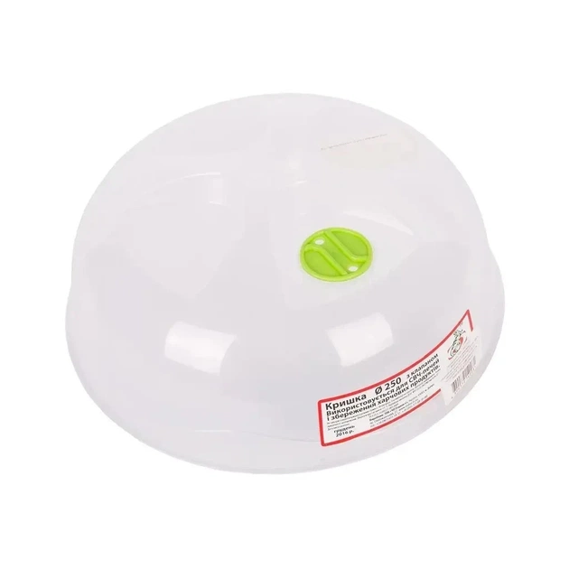 Кришка для мікрохвильової печі призначена для захисту від розбризкування жиру та крапель при приготуванні їжі. Виріб виконаний з якісного термостійкого харчового пластику прозорого кольору. Кришка має комфортну ручку для зручності використання.