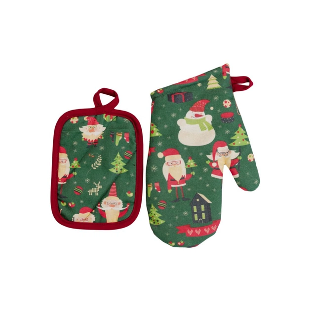 Кухонна прихватка Прованс набір рукавичка та прихватка Санта на зеленому (035795)