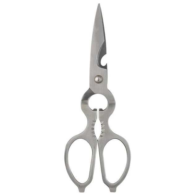 З цими ножицями ви зможете легко обробляти м'ясо, чистити рибу, нарізати зелень для салату та справлятися з іншими кулінарними завданнями, такими як зняття панцира з креветок. Леза ножиць виготовлені з високоякісної нержавіючої сталі, забезпечуючи довговічність та гостроту лез навіть за інтенсивного використання.