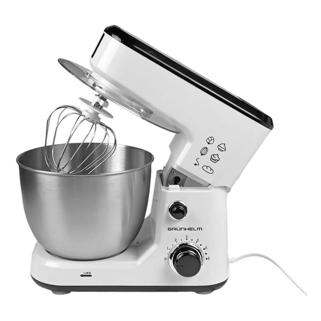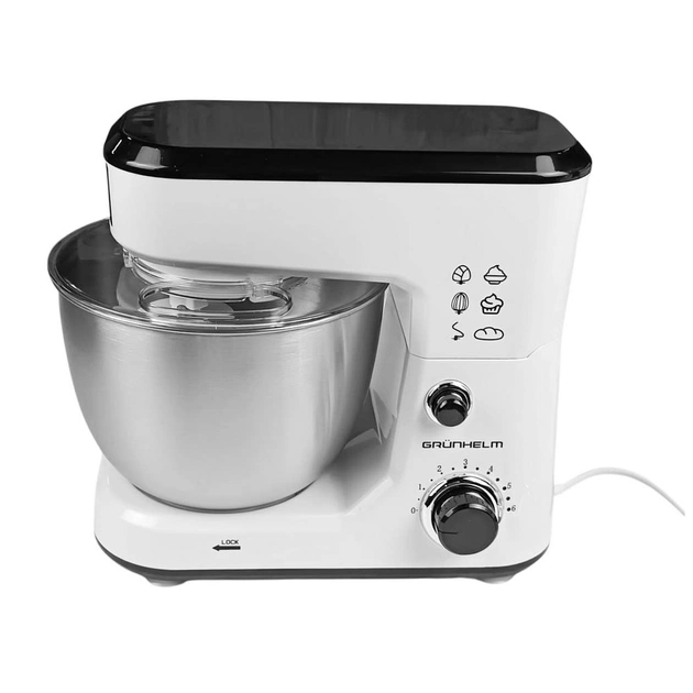 Кухонний комбайн GKM0010 Grunhelm стане незамінним помічником на Вашій кухні. Знімна чаша об'ємом 4 л виготовлена з нержавіючої сталі. Для зручного використання передбачено 6 швидкостей, що регулюються за допомогою ручки.
