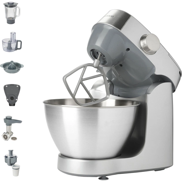 Прилад має два приводи, до яких можна швидко підключати різноманітні насадки. Універсальна К-подібна насадка для перемішування, вигнутий гак для замішування густого дріжджового тіста, металева насадка-віночок для збивання яєць та/або рідких сумішей, кремів, соусів. Крім того, в базову комплектацію входять як повноцінні самостійні прилади: м'ясорубка, цитрус-прес, фуд-процесор, соковитискач та скляний блендер. Працюють вони від двигуна комбайна і можуть повноцінно замінити аналогічні прилади. Додатково в комплектацію входить підставка для визначення ваги продуктів.
