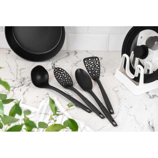 У наборі ARDESTO Gemini Gourmet містяться чотири необхідні предмети: ополоник, ложка, лопатка та шумівка. Аксесуари стильного чорного кольору, виготовлені з високоякісного пластику, можна мити в посудомийній машині.