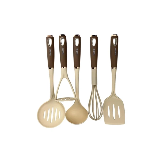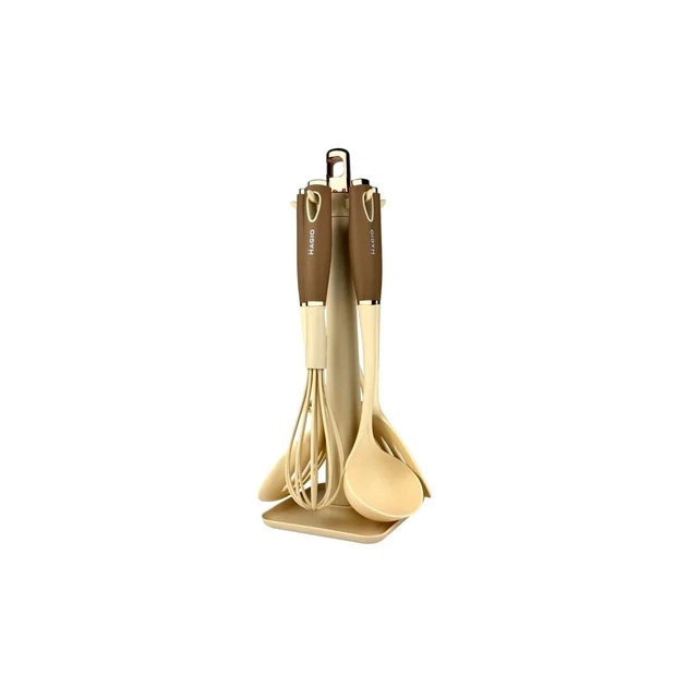 Набір кухонний Magio MG-1124 - практичне приладдя з пластику та нейлону. Ідеально підходить для всіх ваших повсякденних кулінарних потреб. Завдяки підставці можна легко зберігати їх на кухонній стільниці.