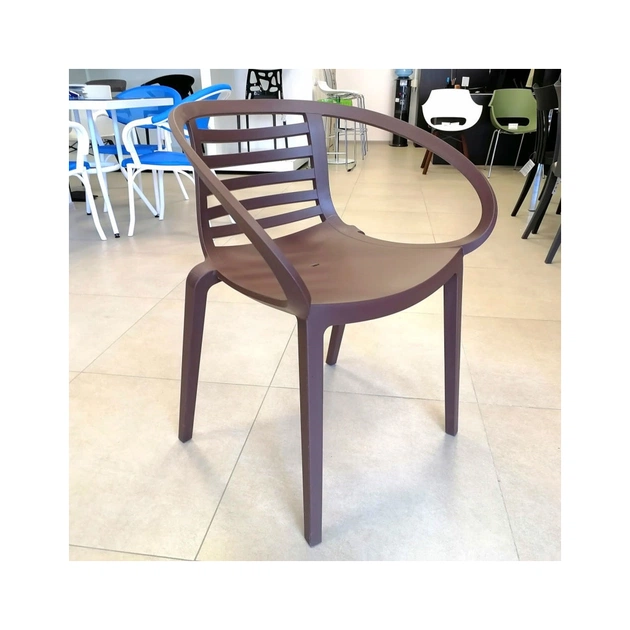 Зручне і стильне моноблочне крісло Mambo, додасть інтер'єру характер і індивідуальність. Модель володіє ергономічною формою, сидіння і спинка забезпечують зручну посадку. Крісло можна використовувати в житлових приміщеннях, в громадських місцях - кафе, барах, ресторанах, а також на вулиці. Міцне і зносостійке крісло витримає посилену експлуатацію, зберігаючи відмінний зовнішній вигляд і бездоганну якість протягом усього терміну служби. Крісло виготовлено з поліпропілену, посиленого скловолокном: матеріал стійкий до впливу низьких і високих температур, вологи, УФ-випромінювання. Штабельований до 9 шт. в стопці.