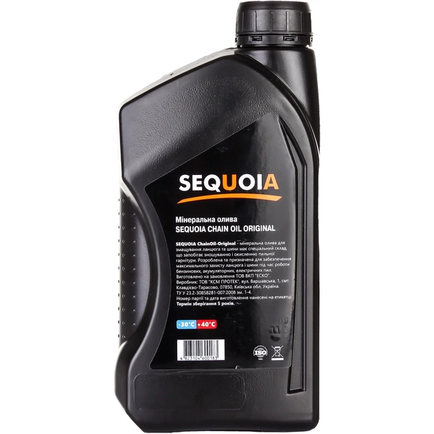 - Sequoia ChainOil-Original — мінеральна олива для змащення ланцюга та шини має спеціальний склад, запобігає спрацьовуванню й окисленню пильної гарнітури.