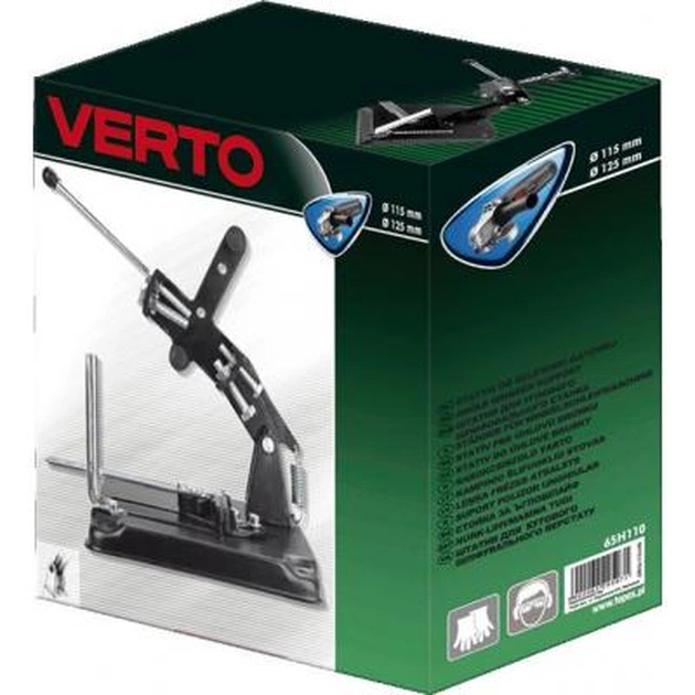 Лещата Verto для углошлифувальної машини, 115 і 125 мм (65H110)Лещата для углошліфмашини призначені для кутових шліфувальних машин з діаметром диска 115 мм і 125 мм і використовуються для стаціонарних робіт.