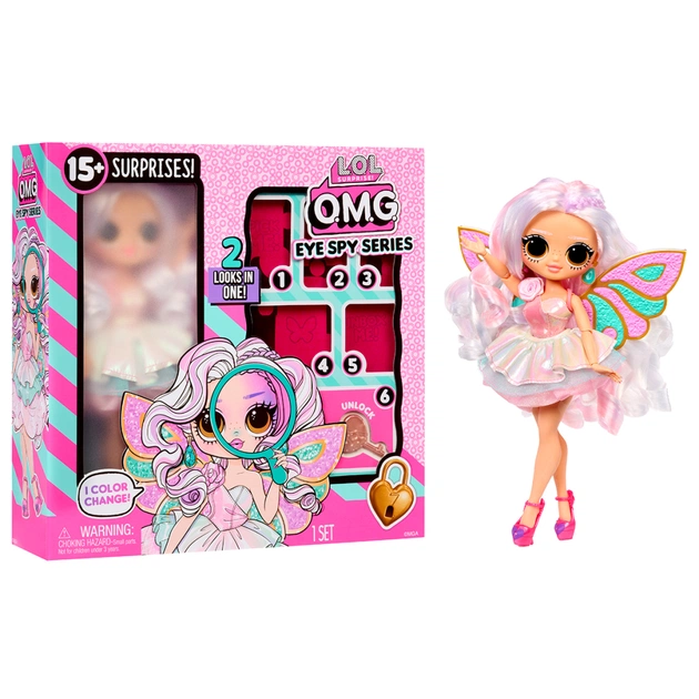 Зустрічайте фею-шпигунку з нової серії LOL Surprise O.M.G. Eye Spy! Вона не просто чарівна істота — це героїня секретної місії у світі L.O.L. SURPRISE! Її завдання — розкрити приховані таємниці, а кожен етап розпакування стає частиною захопливої шпигунської історії.