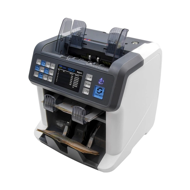 Лічильник-сортувальник грошей NRJ AL-955 забезпечує максимальну безпеку завдяки 4 методам виявлення підробок: оптичної оптичної (Double CIS), УФ, МГ, ІЧ. Додатково пристрій має функції автоматичного виявлення половинок купюр, ланцюжка та виявлення подвійних банкнот. Модель лічильника пропонує кілька режимів підрахунку відповідно до сучасних потреб бізнесу - доступний звичайний підрахунок, розрахунок загальної вартості, додавання, пакетний та автоматичний / ручний підрахунок. Завдяки його здатності швидко перераховувати великі суми готівки з максимальною точністю, оператор легко зможе виконувати свої завдання.