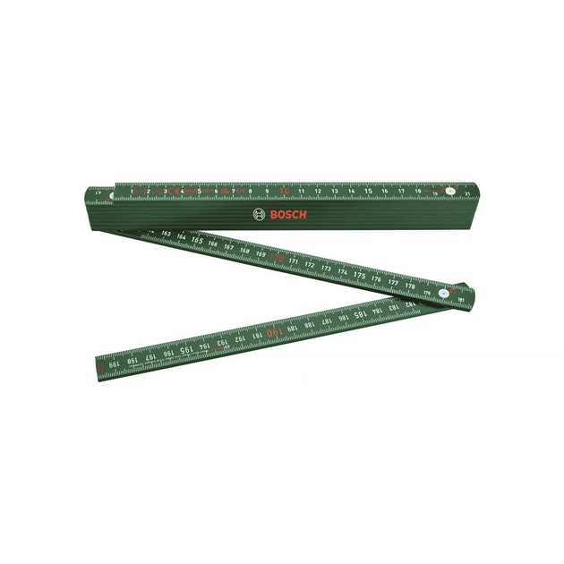 Складна лінійка Bosch довжиною 2 м - високоякісний вимірювальний інструмент, призначений для точних й зручних вимірів у будівництві, ремонті та інших сферах. Завдяки складній конструкції, лінійка компактна і легко транспортується. Легкість у використанні та міцність матеріалів гарантують довговічність навіть за інтенсивної експлуатації.