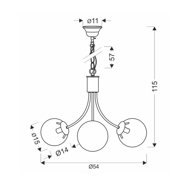Ця люстра з трьома лампочками та цоколем типу E14 забезпечує достатнє освітлення, не будучи при цьому надто різкою. Вона має ширину 48 см і висоту 115 см, що робить її ідеальним розміром для вітальні, передпокою, кухні, спальні або офісу.