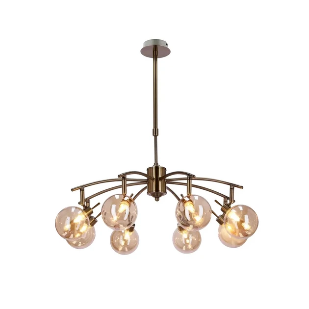 Люстра серії Lentini - це продукт Польщі, відомий своєю вишуканою майстерністю. Латунний колір основи чудово поєднується з бурштиновими скляними плафонами, створюючи теплу і привабливу атмосферу. Ця люстра ідеально підходить для різних приміщень, включаючи вітальні, коридори, кухні, магазини, офіси та спальні, поєднуючи в собі функціональність та елегантність. Зверніть увагу, що лампочки не входять до комплекту, що дозволяє вам персоналізувати свої уподобання щодо освітлення.