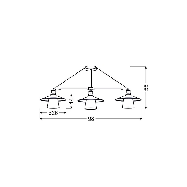 Завдяки трьом цоколям E27, люстра може вмістити різноманітні лампочки, що дозволить вам створити ідеальну атмосферу для будь-якої події. Унікальний дизайн люстри шириною 98 см і висотою 55 см додасть вашому приміщенню виразності, а 26-сантиметровий виступ забезпечить достатнє освітлення навколишнього простору.
