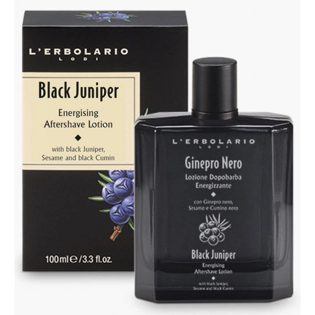Прибрати найменші неприємні відчуття на шкірі після процедури гоління, надати їй м'якість і ніжність, а також прискорити регенерацію клітин допоможе натуральний лосьйон після гоління «Чорний ялівець» L'Erbolario Ginepro Nero Lozione Dopobarba Energizzante. Приємний, чоловічий аромат з нотками деревини та шкіри наповнює енергією. А унікальний склад ретельно підібраних екстрактів і інших компонентів надають заспокійливий, пом'якшувальний ефект, прибираючи дискомфорт після гоління. Екстракт ялівцю тонізує, живить і відновлює, заліковує невеликі ранки.