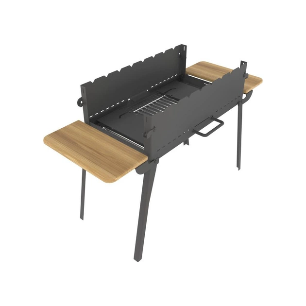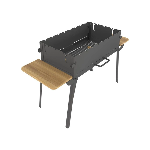 Решітка-гриль обладнана дерев’яними ручками, легко складається та поміщається всередину мангала.
