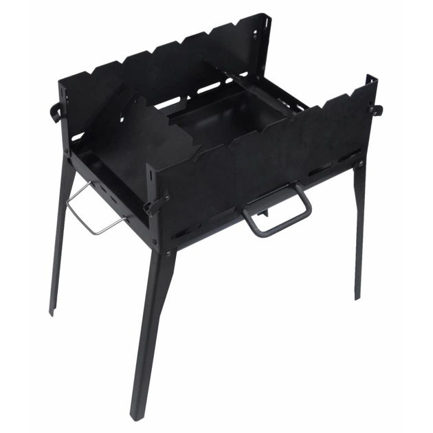 Всі деталі мангалу склепані між собою, а сам мангал складається у форму зручного кейса, що не дозволить вам втратити важливу деталь і займає мало місця. Мангал обладнаний центральної ручкою, а також двома додатковими бічними ручками, які не нагріваються.
