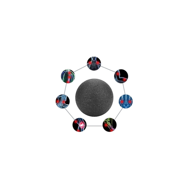 Масажний м'яч — для точкового масажу глибоко розміщуваних груп м'язів торсу, рук, ніг, стоп та шиї. Використовується в положенні лежачи, сидячи або з опорою на стіну.