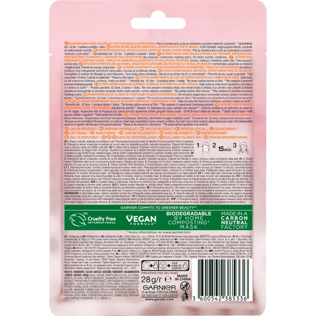 Тканинна маска для обличчя Garnier Skin Naturals Зволоження та Комфорт підходить для сухої та чутливої шкіри.