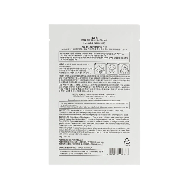 Маска для обличчя Mizon Joyful Time Essence Mask Тканинна Зелений чай 23 г (8809663752262)