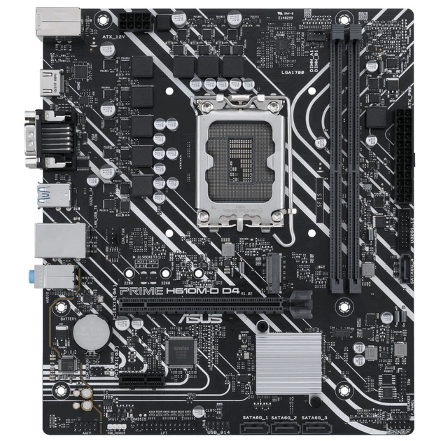 Материнська плата ASUS PRIME H610M-D D4 представляє собою ідеальне рішення для користувачів, які прагнуть отримати неперевершену продуктивність з новітньою технологічною основою. Ця плата формату Micro-ATX розроблена для використання з процесорами нового покоління від Intel, базуючись на системній логіці Intel H610, що забезпечує надійну роботу ваших компонентів та зручність у налаштуванні.