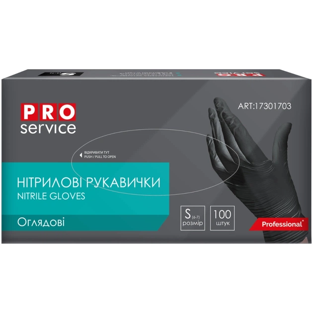 Медичні рукавички PRO service Оглядові нітрилові нестерильні неопудрені Розмір S Чорні 100 шт. (4823071638844)