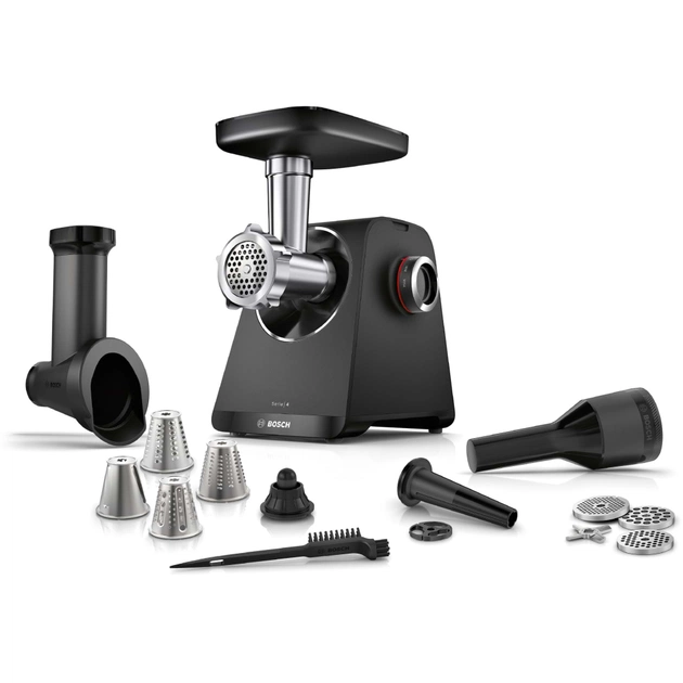 - Диски для подрібнення різних розмірів; перфоровані диски з нержавіючої сталі (3 мм, 4,5 мм і 8 мм) забезпечують легке подрібнення сирого або вареного м'яса, риби та сиру. Також можна обробити картоплю на вареники або приготувати деруни та подрібнити підсушені булочки в панірувальні сухарі для використання в інших стравах. Можна мити в посудомийній машині.