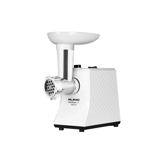М'ясорубка Milano MG-4016WTS MeatMaster Lite оснащена двома решітками для різних видів м'яса, а її білий колір додає елегантності до інтер’єру кухні.