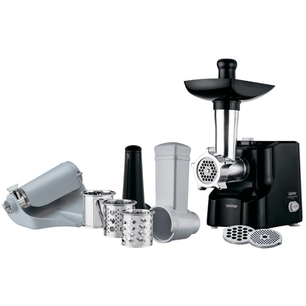 - Подрібнювач з набором з 3 барабанів для терки та шатківниці, насадка для томатів.