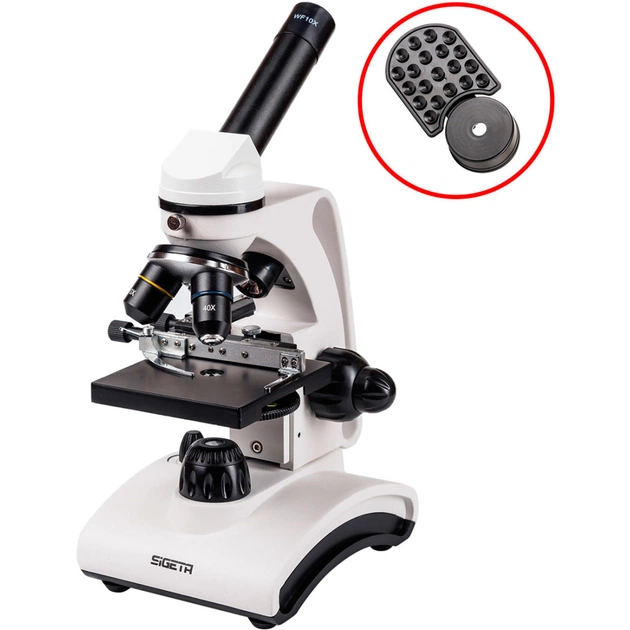Sigeta Bionic 40x - 640x - це шкільний (навчальний) біологічний мікроскоп з широким діапазоном збільшень, багатим функціоналом та продуманою комплектацією. Прекрасно підходить для вивчення мікросвіту та стане розумним вибором для дітей шкільного віку та старших. У комплект поставки включено вичерпний набір додаткових аксесуарів: смартфон-адаптер, інструменти для препарування, ємності для розведення, набір готових мікропрепаратів і порожнього скла, що дозволить приступити відразу ж до експериментів і досліджень мікросвіту.