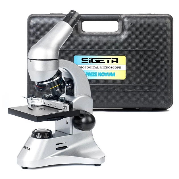 Мікроскоп Sigeta Prize Novum 20x-1280x — шкільний біологічний мікроскоп у кейсі: призначений для комфортного вивчення препаратів у прохідному, відбитому та змішаному світлі.