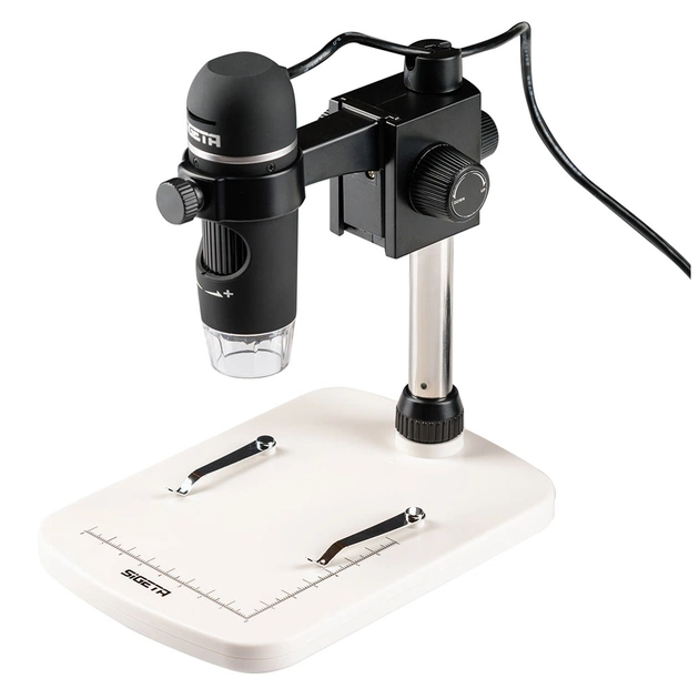 SIGETA Expert — сучасний цифровий мікроскоп для проведення досліджень та виконання точних робіт при збільшенні від 10х до 300х. Оснащений якісною 5-мегапіксельною камерою, яка забезпечує отримання кольорових зображень з високою деталізацією, а також потужною LED-підсвіткою з плавним регулюванням яскравості для комфортної роботи за різних умов освітлення. Корпус з покриттям silk-touch не тільки виглядає естетично і приємний на дотик, але й не дозволить мікроскопу вислизнути з рук під час використання.