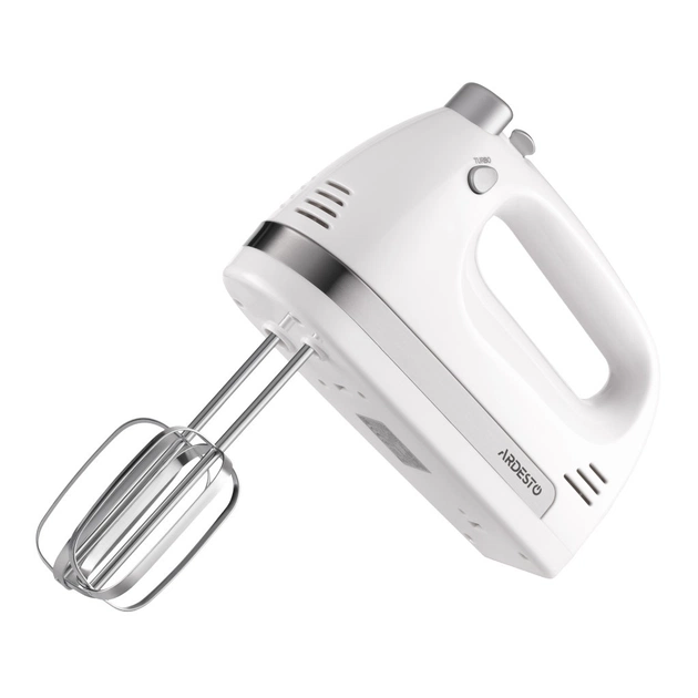 Ручний міксер ARDESTO HMC-3000W з двигуном з мідною обмоткою у корпусі білого кольору. Потужність пристрою становить 300 Вт. Міксер має компактний розмір, завдяки чому поміститься в кухонному ящику чи шафі. Передбачено зручне руків’я для керування та маневрування під час приготування. Наявність 5 швидкостей дає змогу вибрати найоптимальнішу. Кнопка турбо робить користування ефективнішим. У комплекті є найнеобхідніше: віничок для збивання × 2 шт.; гачки для для тіста × 2 шт. Система безпеки передбачає захист від перегрівання. Довжина шнура становить 1,2 м.