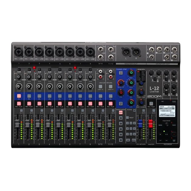 Zoom LiveTrak L-12 - багатофункціональна цифрова консоль для мікшування, звукозапису, моніторингу, відтворення і ремікшування.