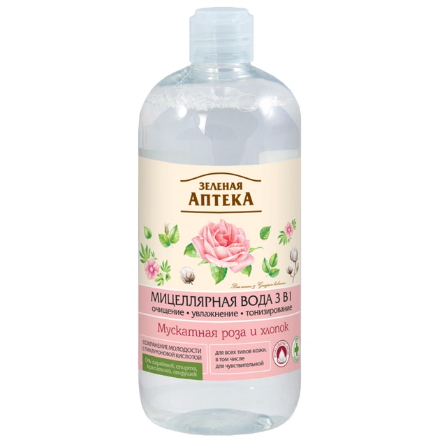 Міцелярна вода Зелена Аптека 3 в 1 Мускатна троянда і бавовна 500 мл (8588006036947)
