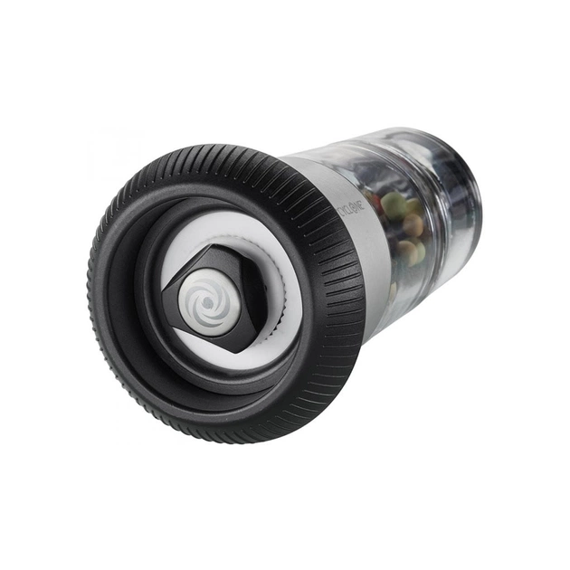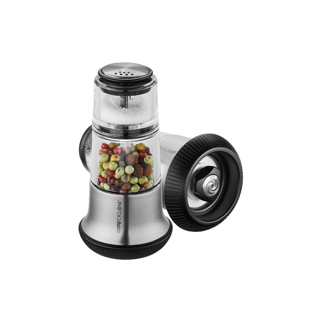 Цей зручний інструмент «два в одному» перевертає традиційний спосіб приправлення їжі з ніг на голову та залишає чудове враження на кожному столі. У верхній частині легко поповнюваної камери для спецій розташована сіль, а в нижній — перець горошком. Млин для перцю обладнаний особливо плавним і плавно регульованим прецизійним млином Cyclone. Привабливий і ефективний спосіб приправити їжу!